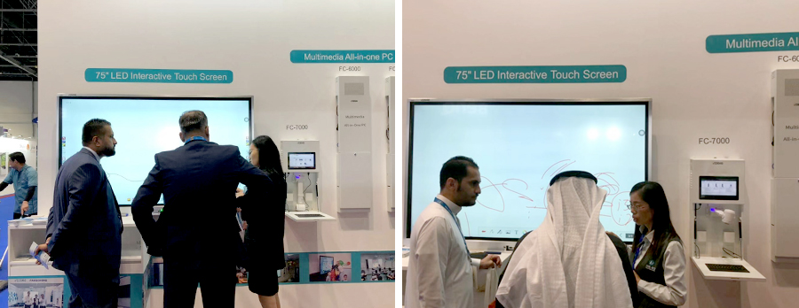于教育技術的展會。2019年2月26日至28日,在迪拜世界貿易中心方成教學攜最新款液晶一體機亮相 。此款液晶一體機以新穎的銀色超
